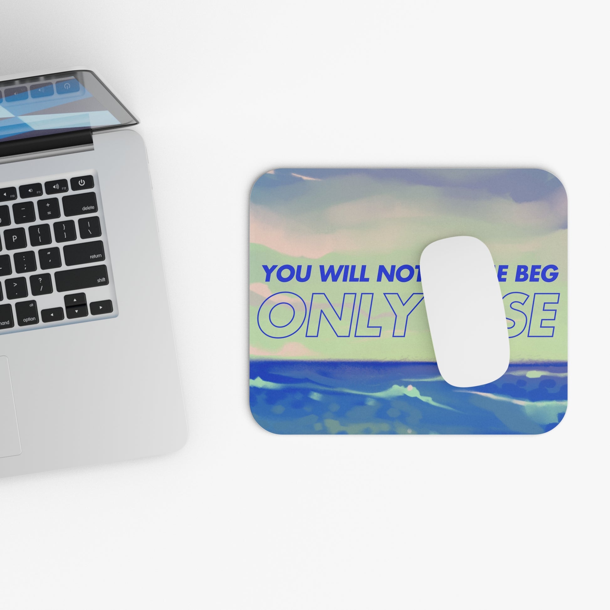 Inspirational Ocean Wave Mouse Pad - "You Will Not See Me Beg, Only Rise"