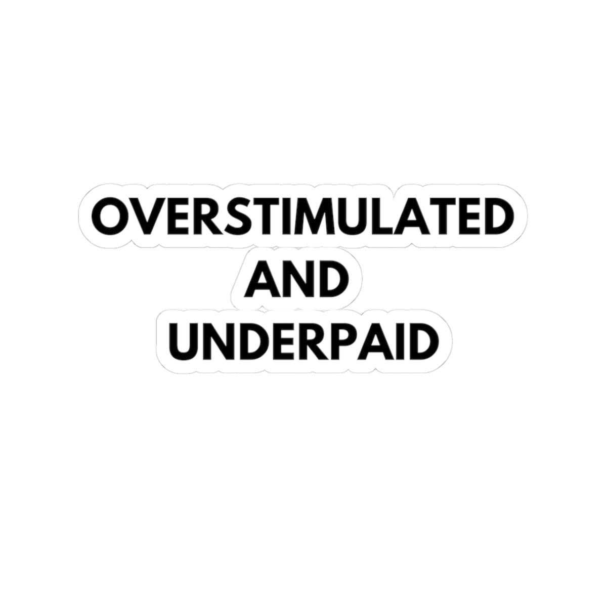 Overstimulated and Underpaid Kiss-Cut Stickers - Fun Quotes for Work and Home Decor